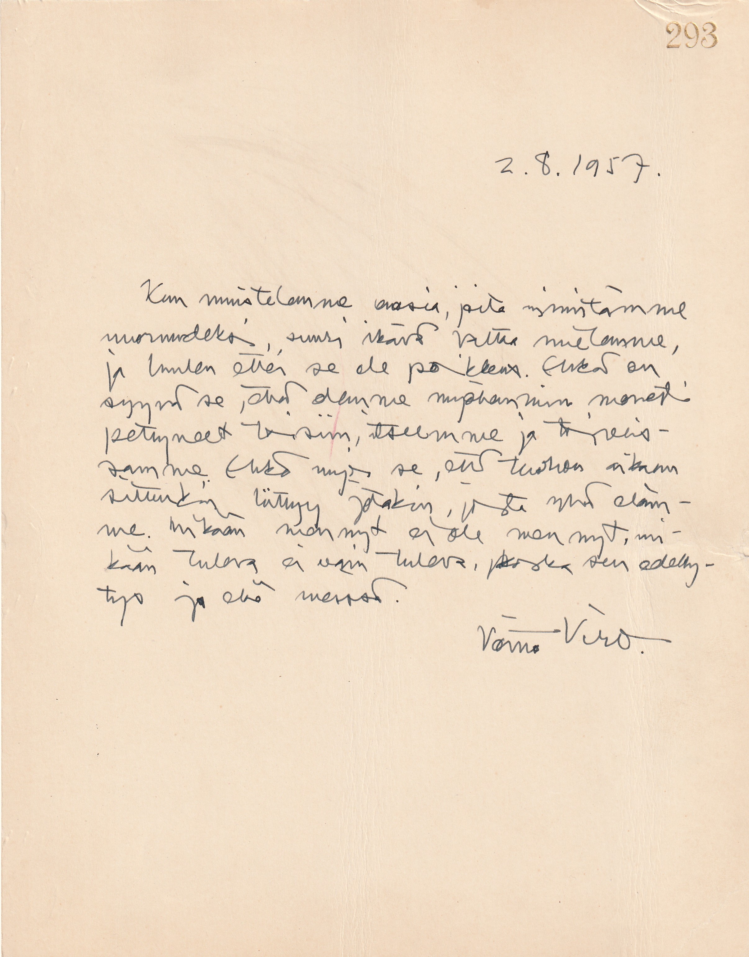 (kirje on hieman rypistynyt ja reunassa arkistointireikiä, muuten