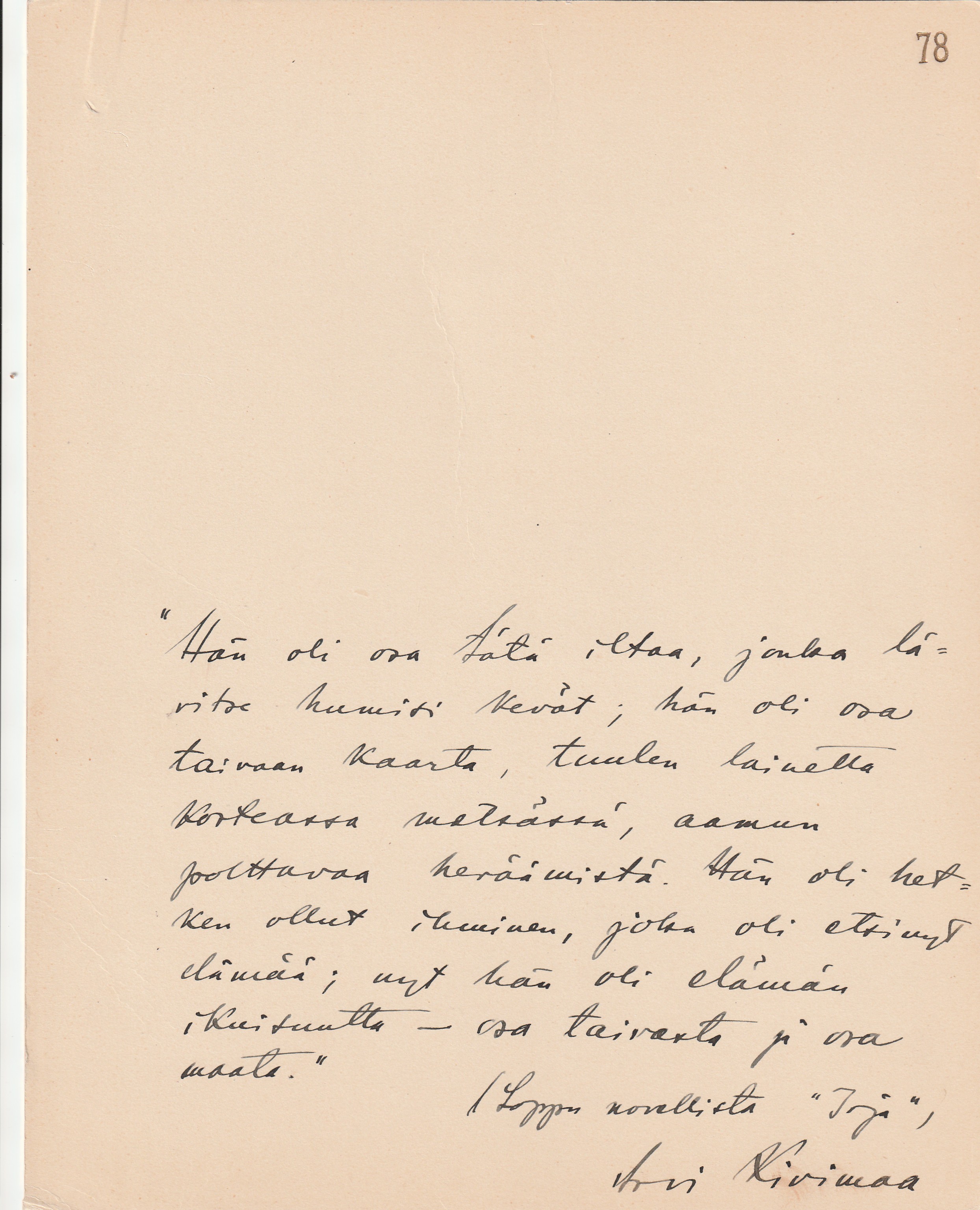 kirjailijan nimikirjoitukset: Toivo