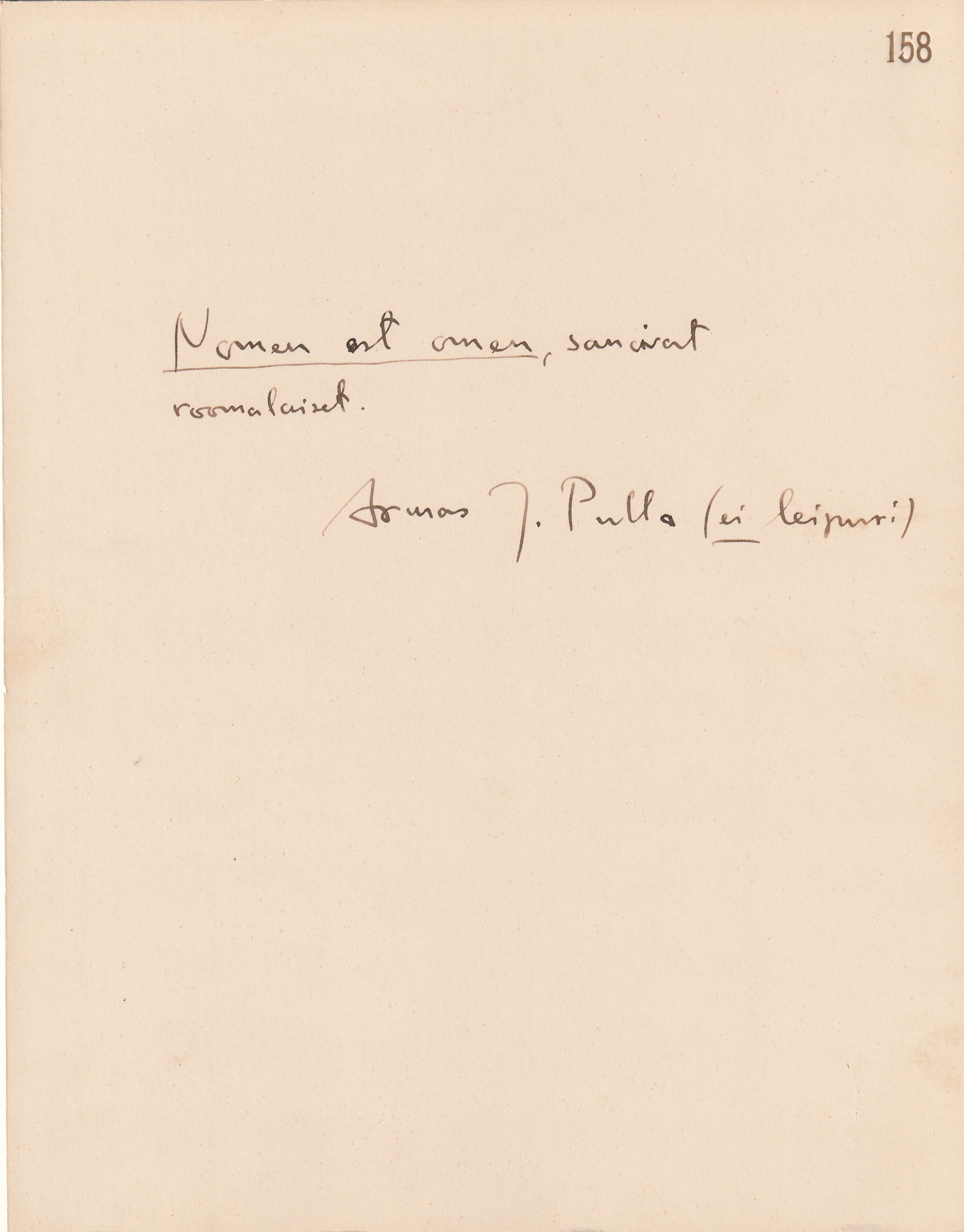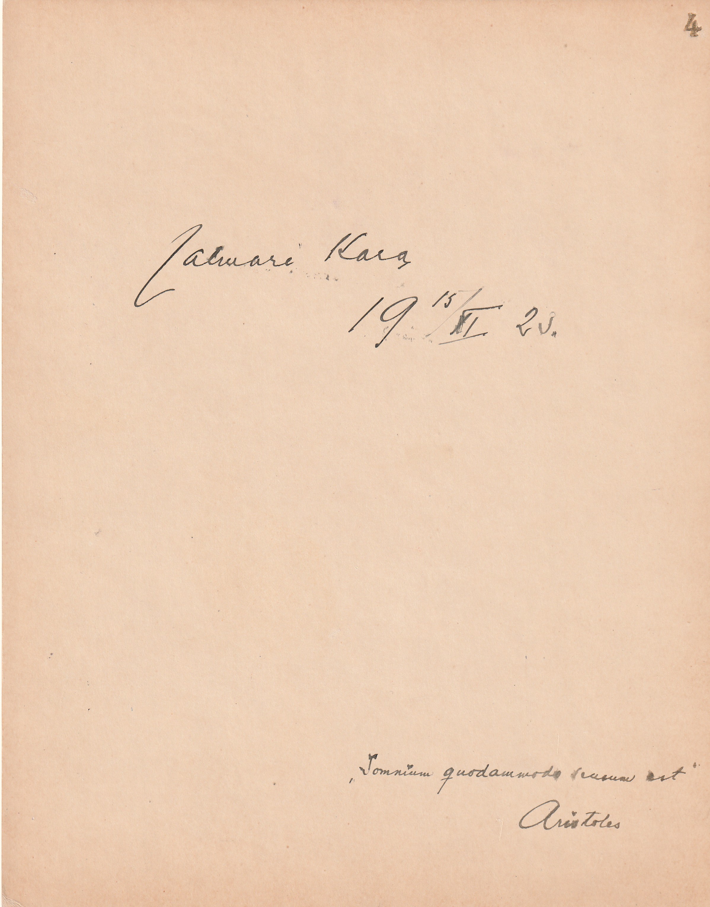 x 26,5 cm kokoinen kartonki, jolla Turjan omakätinen kirjoitus