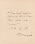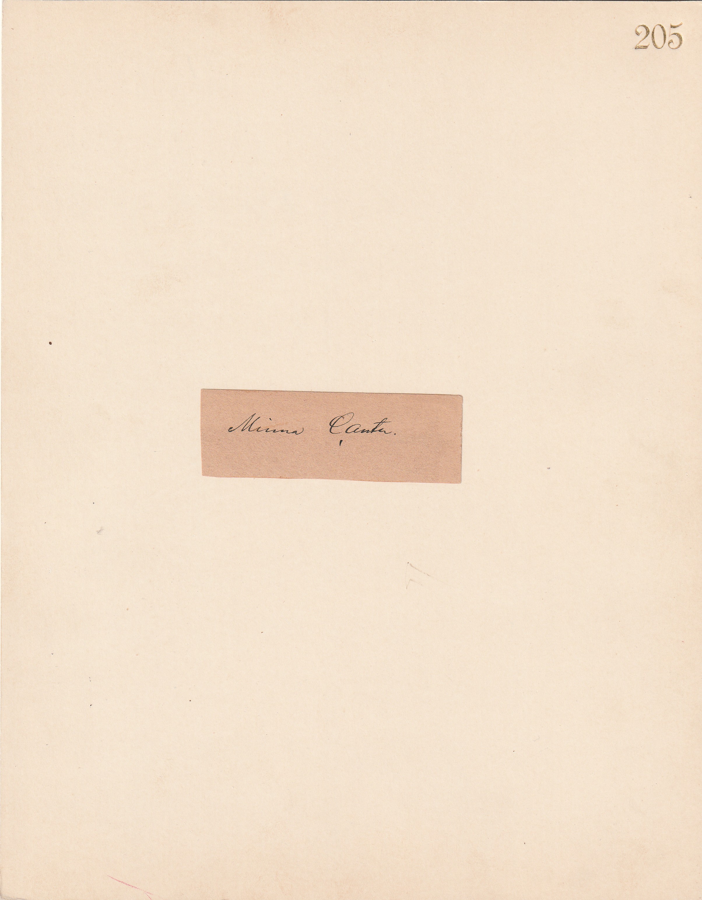 20 x 26,5 cm kokoinen kartonki, johon liimattuna paperi, jolla Canthin nimikirjoitus. ERITTÄIN HARVINAINEN!