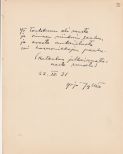 20 x 26,5 cm kokoinen kartonki, jossa Haaran omakätinen kirjoitus: ”Olen kampurajalka ja naamalta peikko, sydämeltäin aasi mut aivoilt’ en heikko”. Päivättynä Helsingissä 28.II.31.