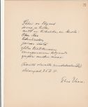 26,5 cm kokoinen kartonki, jolla Vuorelan omakätinen runokirjoitus