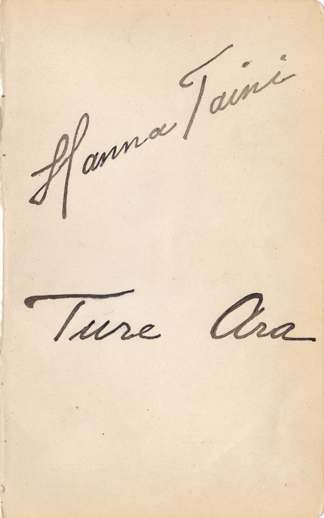 on omistuskirjoitus: "Tepolle 5.3.39 Kärki". ERITTÄIN