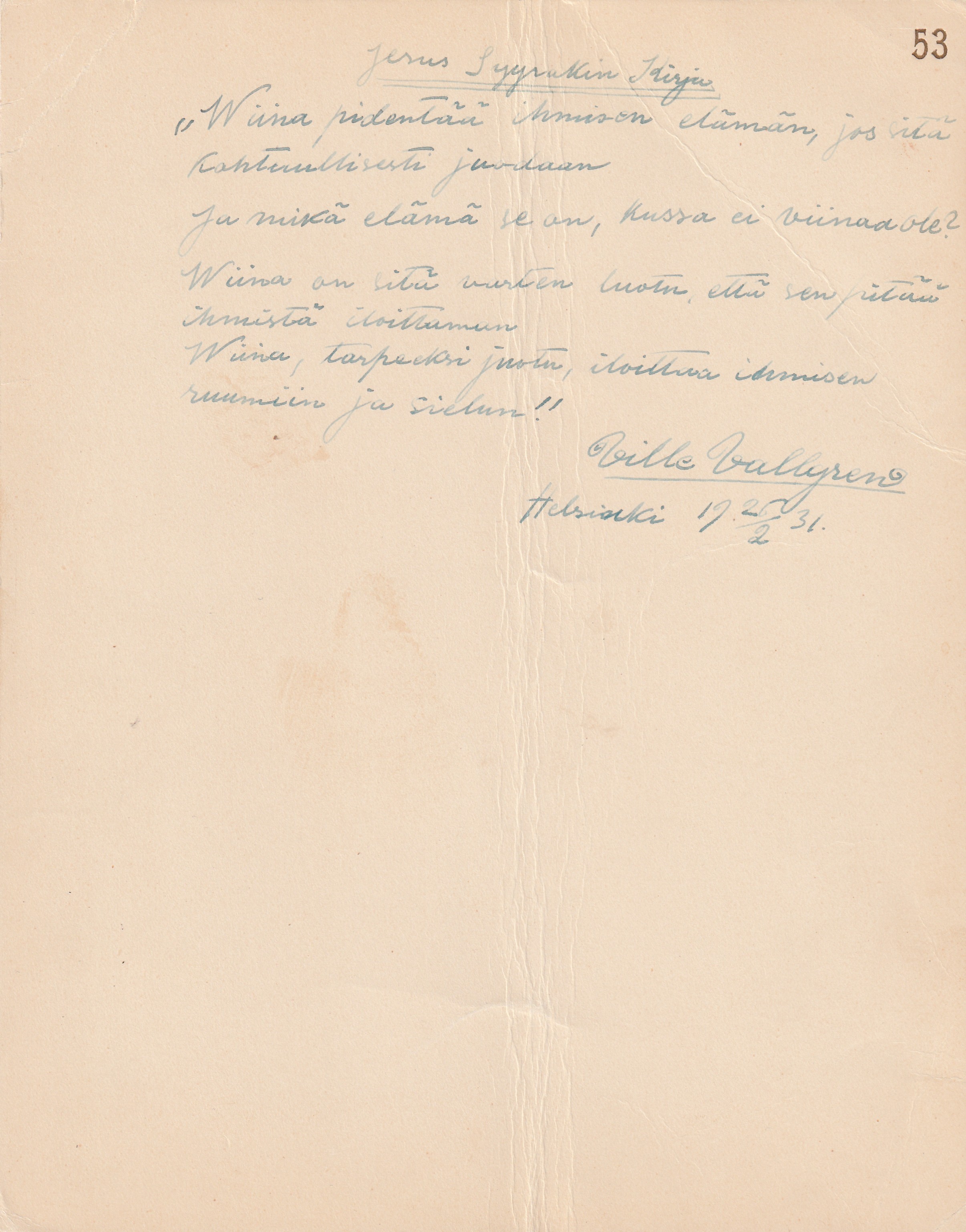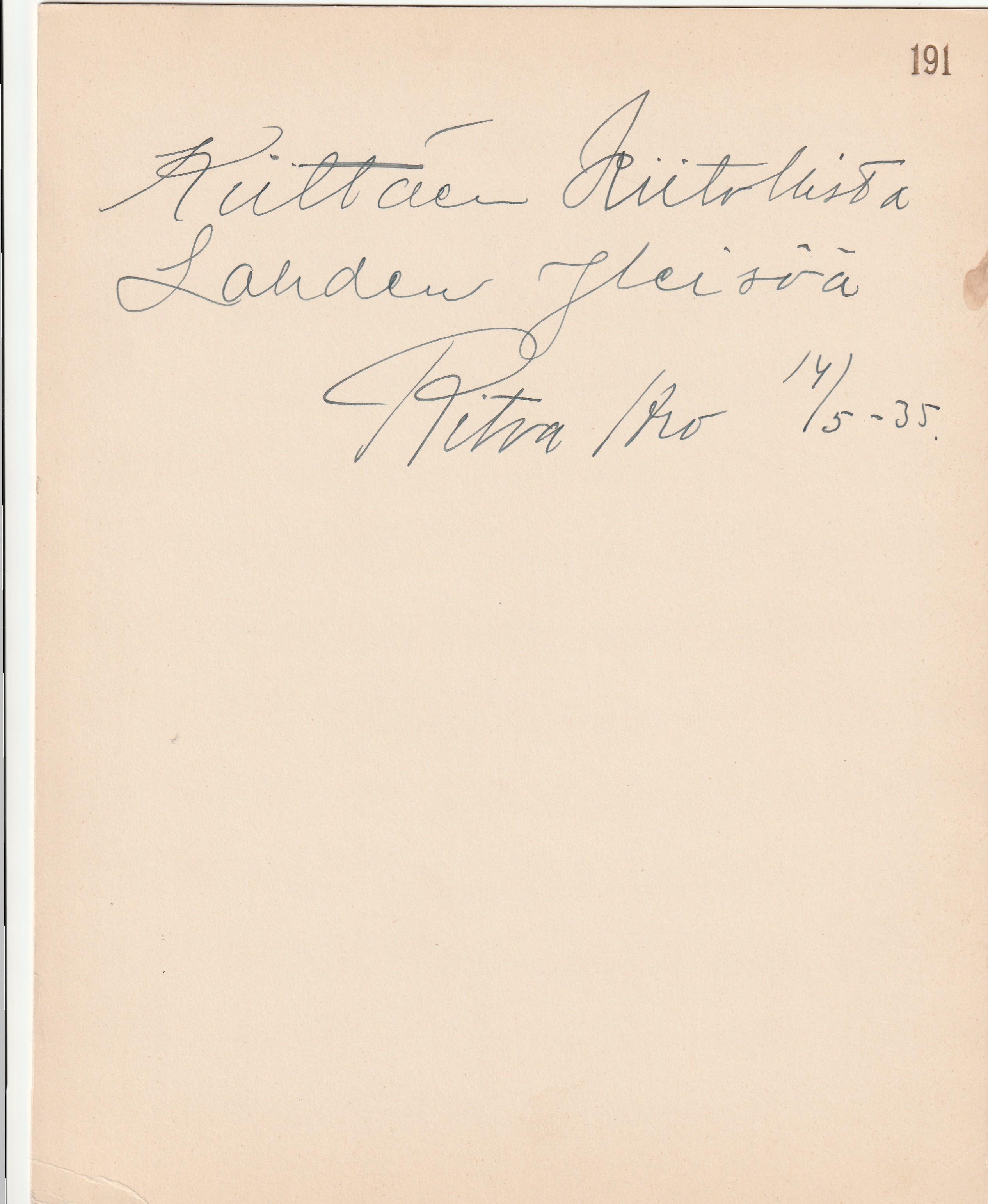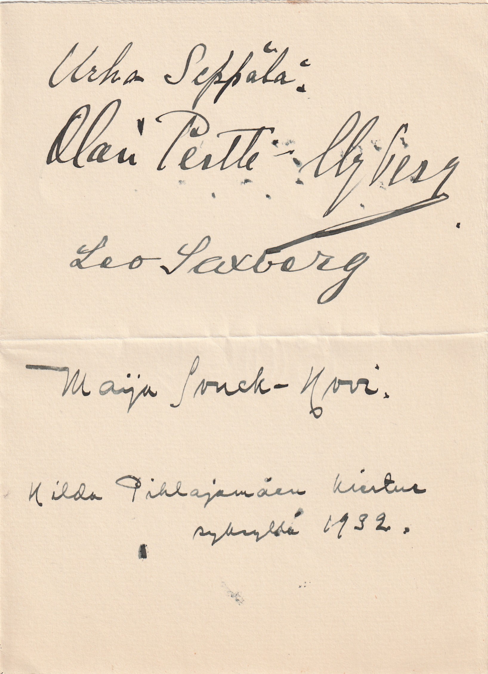 on kuulunut tunnetun nimikirjoitusten kerääjän Eki-Sedän kokoelmaan.