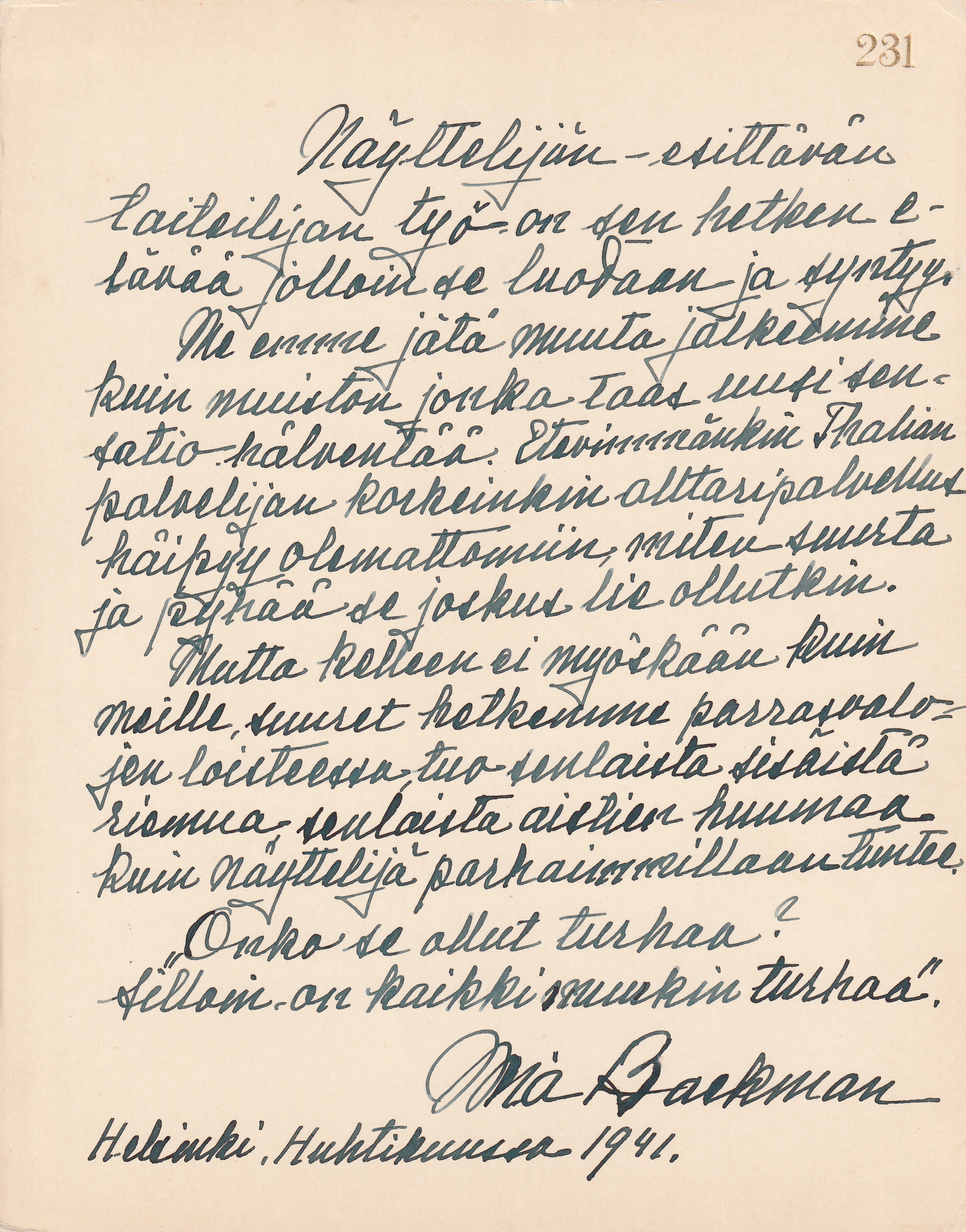 sekä mm. Thorsten Waenebergin ja Armas Lindgrenin nimikirjoitukset.
