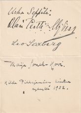 papereita, joilla Saarisen nimikirjoituksen lisäksi Lars Sonck