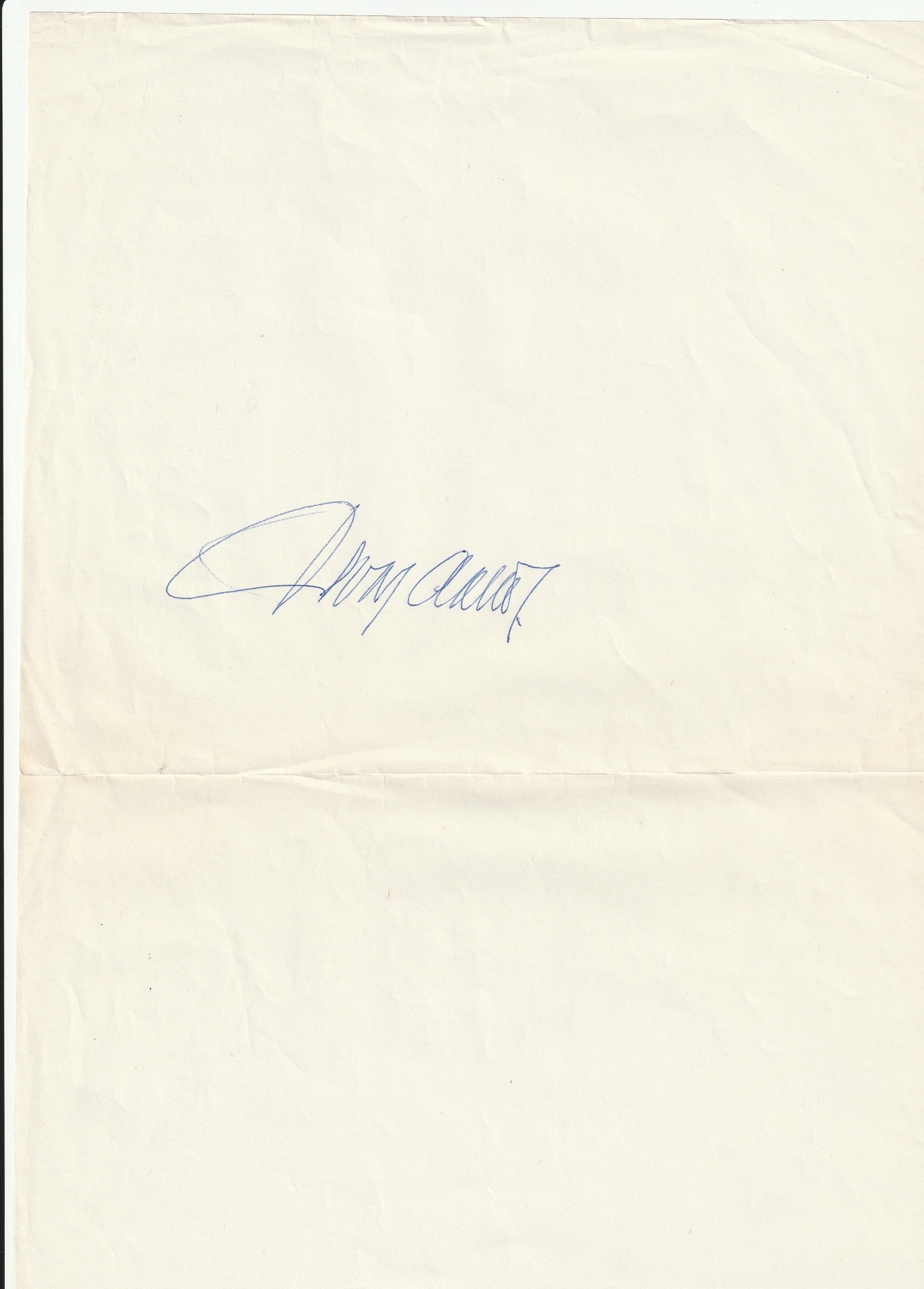 13 x 10 cm kokoinen paperi, jossa Aschroftin nimikirjoitus.